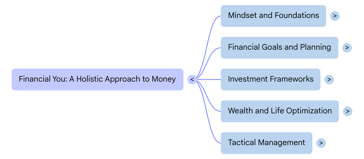 The result was a mind map that organized the essence of this blog into five distinct pillars. It made me realize that “Financial You” isn’t just a collection of tips. It has evolved into a holistic system.